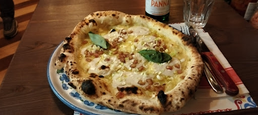 Esperienza fatta il 14/01/2025 Mi sono recato in questa sede di Pizzium verso le 19:30 e il locale non era affollato. Per avere un'idea del posto, appena entri sembra di essere in una casa della nonna del sud, con barattoli di vetro decorativi che ricordano le dispense interminabili che le nonne non esitano mai a svuotare per accontentare figli e nipoti. Sulla via per andare al bagno, le piastrelle sono decorate con uno stile che ricorda quello calabrese o siciliano, tipico delle regioni della Magna Grecia, in sintonia con l'ambiente . Per riprodurre l'ambiente casalingo si è optato, come si può notare nella seconda immagine, per l'utilizzo delle sfumature di marrone e del legno. Una buona scelta. Stava per sfuggirmi, ma non mi è sfuggito il disegno su muro che raffigura una scena marittima, compatibile con il concept del luogo. Bagno classico, senza distinzione di genere (che potrebbe essere visto come un contro, ma siccome c'è un solo WC, quindi non ci sono problemi di compresenza, ed esistono le persone non binarie, che potrebbero sentirsi a disagio dal binarismo maschi - femmine, per me è assolutamente un pro). Per un locale di quelle dimensioni è ok. Appena sono entrato, mi hanno subito indicato il tavolo e mi hanno fatto accomodare, ho potuto ordinare grazie al menù consultabile nel sito (accessibile con QR Code) e sono stato servito in pochi minuti. Quest'ultimo dettaglio lo sottolineo perché sono stato il primo curioso ad assaggiare la pizza del mese, la novità di gennaio, la pizza Speciale Veganuary (in foto). Nonostante l'ordine mai effettuato (almeno in questo mese) ho sentito i pizzaioli spiegare alla cameriera che tipo di pizza si trattasse, e quindi si sono rivelati attenti a queste novità e pronti nel preparare la pizza in tempi molto buoni. La cameriera, immagino neoassunta, nonostante la sorpresa per la comanda inaspettata è stata non solo capace di trovare subito una soluzione alla lacuna informativa chiedendo al collega (a volte, in alcuni locali, i camerieri si assentano per andare a chiedere informazioni generando imbarazzo, invece lei è rimasta sul posto e ha colto l'attimo in cui il collega era lì vicino), ma è stata curiosa in seconda battuta e questo denota sia problem solving che interesse nello svolgere un buon lavoro. È stata molto gentile a chiedere, appena dopo che mi sono seduto, se volessi qualcosa da bere. Passiamo quindi alla pizza Speciale Veganuary. Sono un simpatizzante della cultura vegan (anche se ancora sono solo pescetariano) e direi che questa pizza è consigliabile anche a chi è onnivoro, visto che non utilizza prodotti particolarmente di nicchia e può dunque essere un nuovo orizzonte anche per chi si dichiara acerrimo nemico di tofu e seitan. Alcune volte, le alternative vegan non sono all'altezza del corrispondente sostituto. In questo caso, però, l'alternativa è di livello. La vellutata di patate aromatizzata al timo mi ha piacevolmente ricordato, per consistenza, il formaggio della focaccia di Recco. Come sapore è affine a quello dei latticini pur chiaramente essendo diverso, ma sono sicuro che un palato poco attento potrebbe confondersi. Il tocco che fa però la differenza tra una pizza che potrebbe essere messa lì solo per moda e una pizza da non perdere per gli appassionati del vegan è il contrasto di sapori della combinazione vellutata, porri e melagrana. Il dolce della melagrana viene correttamente bilanciato e i porri offrono anche uno spunto in più: su suggerimento del ragazzo in cassa, ho combinato qualche pezzo con un tocco di peperoncino e proprio il porro permette di non sbilanciare il sapore dalla parte del peperoncino e lasciare il focus del gusto sulla combinazione. Il basilico è il passante che dà il suo contributo, non essenziale ma neanche di troppo. Sull'impasto nulla da aggiungere, visto che la costante di Pizzium, per ogni pizza, è un impasto dalla crosta alta e morbido, piacevole da toccare e cotto al punto giusto. La pizza si mostra, artisticamente parlando, valida. Il conto è stato molto onesto, quello che...