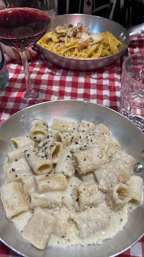 Read moreIo vi do 5 stelle perchè in un momento di mancanza di quello che in cucina faceva i panini in cucina, abbiamo accordato lo stesso un piatto di porchetta dopo la carbonara. Premetto che cucino una carbonara davvero eccezionale e la fate eccezionale anche voi. Quindi da cuoco a cuoco vi dico bravissimi. Siete stati una scoperta piacevole durante la Milano Fashion Week. Abbiamo pranzato molto tardi e non avete fatto una piega per l'orario. Servire spartanamente la pasta direttamente nella padella in cui l'avete cucinata è un sintomo di sincerità da parte della cucina, ed è artisticamente bello. Ho dato una forchettata anche alla gricia (che faccio bene anche io) di una ragazza che era con me, quindi dico bravi anche per quella. La vostra porchetta IGP è davvero deliziosa, convince anche chi è mediamente scettico alla porchetta (una ragazza delle mie). Vi siete meritati una storia sul mio IG business che avete ricondiviso. Verrò ancora a trovarvi, prenderò nuovamente il tavolo vicino al televisore, e con il telecomando metterò nuovamente ritorno al futuro per fare ambiente anni 80' che si sposa con la tradizione di quello che cucinate, perchè fermarsi un attimo nel tempo del meglio di quello che il nostro paese è stato credo che sia una cosa bellissima, e da voi è possibile, Quindi...