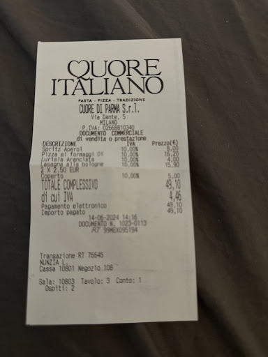 we went there for lunch the manager, the tall guy he was mean with us (obviously because we’re not italian) and then the waitress was also mean to us whenever we were ordering something she would like get annoyed if we pronounce something wrong in italian we’re international people so obviously we’re gonna speak in English. Also whenever she brings out a plate or the bread she would just like throw it on the table, which is really not nice if we’re going to a restaurant and we’re spending our money there the least they can do is treat us politely, even though we’re not not Italian people. I think they should be more open minded since Milano is a touristic place and the restaurant is in a touristic area and they receive a lot of tourists so they should get used to the fact that they need to treat us like they treat other people from their own country. One thing that also bothered me, how the guy treated an old couple which looked really insensitive of him, another group of 2 people were treated the same way as us (they were also english speakers). So overall, I DON’T...
