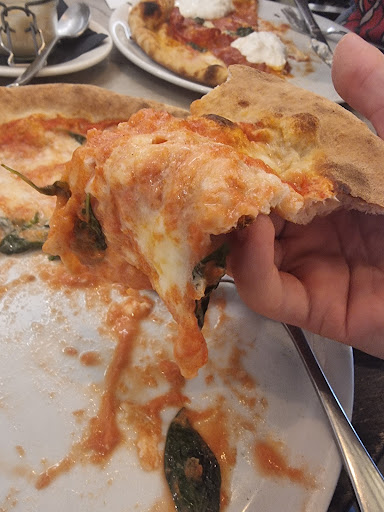 I had a take away pizza with a friend to share. We asked to make it half margherita and half with prosciutto and mushrooms. Everyone was nice and kind. However, when later we opened the box, we found out that half of the pizza was bare, with no ingredient whatsoever (no tomato sauce, no cheese, no nothing) and the other half had visibly been prepared hastily, with no care. The tomato sauce was watery and tasteless. The only "acceptable" part was the dough. It's a pity because everyone had been so nice and we paid 13€ for a pizza that wasn't even worthy half of its price. Please, be more careful with the assembling of the ingredients or you'll lose potential new customers.