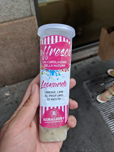 Incredible gelato! Right next door to Grom, which we aren't a huge fan of, but the texture and flavor of their fior di latte is greater, and even the pistachio - which is one of our perennial favorites at Grom - is on point. Grom's pistachio has a deeper roasted flavor, which gives it a slight edge to us, but don't sleep on Rinaldini! Also was nice to walk into an air conditioned shop during the heat wave. Did not eat in the shop to avoid service fee. Their lemon, lime, and mint ice was also an incredibly refreshing summer treat! Very bold but natural...