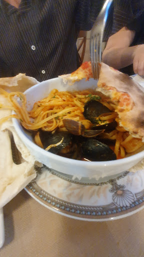 Sono andata a cena con mio marito per festeggiare San Valentino 2020 consigliati da un collega di lavoro.. Inizialmente abbiamo preso per antipasto lo Gnocco fritto con crudo di Parma: ottimo!! Il primo che ha scelto mio marito era una porzione molto scarsa che non valeva il prezzo pagato ed il secondo (caprese), aveva la bufala poco fresca ed il pomodoro sapeva di muffa!! Che schifo!! La pecca piu' impattante si e' riscontrata con il mio fritto misto di pesce che, sul menu' comprendeva gamberi, calamari e fiammiferi di zucchine ed invece e' arrivato in porzione innanzitutto ridottissima ed in piu' aveva le alici che espressamente non avevo chiesto: prezzo di listino 15 euro!! Il ragazzo che serviva il ns tavolo (molto gentile e disponibile) mi propone di rifare il piatto.. Ok.. Arriva il secondo fritto misto che io ho definito "piu' fritto che misto!!" dato che era solo una frittura di calamari, per lo piu' secchi e disgustosi, li ho mangiati solo per fame, completamente scarsa!! Alche' arriva un secondo cameriere piu' anziano e mi chiede se e' tutto ok: rispondo spiegando lo spiacevole accaduto e lui mi dice tranquillamente: "non possiamo accontentare tutti!!" Pazzesco!! Successivamente codesto tizio, continuava a ripassare dal ns tavolino "guardandoci male" senza neppure sparecchiare i ns piatti.. Assurdo!! Con questa situazione di completo imbarazzo, ci siamo alzati senza neppure prendere il caffe' e siamo andati a pagare!! Il cassiere, che immagino sia il titolare, non ci ha neppure chiesto come mai si andava via in codesta maniera: giudicate voi che mi avete letta se, andare o meno in...