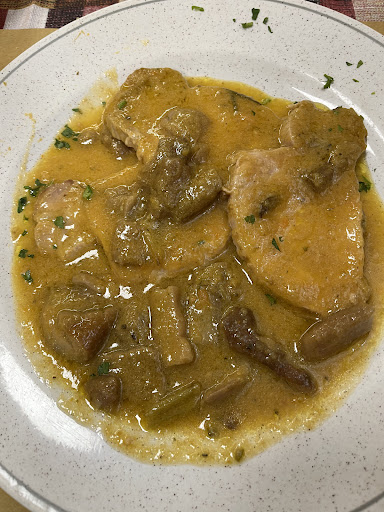 Came here for a late lunch during a recent conference and we were very happy with the experience. We chose dishes from the lunch menu, which includes two courses (primi, secondi), including a side (contorni) and a drink for - if I remember correctly - 13€, so amazing value for money! For the first course we both had pasta. My lunch companion had the penne al arrabbiata and I the tagliatelle mare e monti. Both were delicious and came in very big portions. For secondi, I had the pork in a rich, mushroomy sauce and patate frite as the side. My lunch companion went for the chicken with lemon sauce. We were both very satisfied with our choices and thoroughly enjoyed the secondi and sides too. The service is quite functional and not super friendly but the food arrived fast. The restaurant can get a bit loud when full. The coffee...