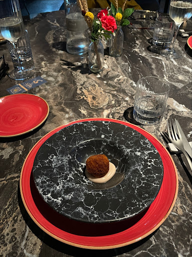 The evening started off well with a tasty welcome appetizer, but that was the highlight. We ordered an entrée, two mains, and a side, and were surprised to find that everything came out cold — the fish, the grilled vegetables, the potatoes, and even the sauce. It was really puzzling, as we expected hot, freshly prepared dishes for the price we were paying.