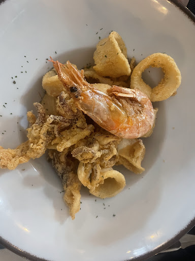 Io ho preso fish&chips e il mio collega frittura mista Il cibo nulla di che, se mangi cose da menu mangi poco e spendi poco, se mangi cose alla carta mangi poco e spendi molto e la qualità non è il massimo lo stesso.. la stessa del menu da 10 euro per intenderci.. acqua filtrata (del rubinetto insomma) caffè scarsuccio e personale scortese ed è qua che pongo l'accento.