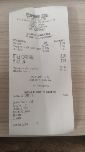 Read moreRistorante dell’ormai nota catena Rossopomodoro, situato al primo piano del centro commerciale Bicocca Village. Scesi dalle scale mobili, girare a destra e proseguire per circa venti-trenta metri.