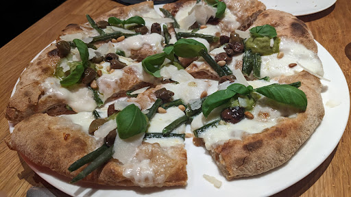 The whole experience was enchanting. Their pizzas taste great, are made with high quality ingredients and the variety is pritty big. You can find the regulars: margerita, diavola, but you can also order some pizzas which have the dough firstly baked and they they add the ingredients on top, or even some pizzas which have the crust both on bottom and on top (see photos). The service was very nice. You might need to get a reservation, as the place it is quite popular. The prices are higher for their special pizzas (around 20-30 €), but I think this is justified by the uniqueness of the pizzas, the taste and the ingresients used. They also...