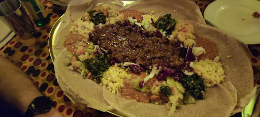 First, I must compliment the restaurant design, which looks authentic and rustic, with light sand-colored walls and African art that makes it seem like you’re eating the tasty dishes directly in Eritrea. The service was incredible, the waiter was very attentive and went above and beyond to ensure my lunch was excellent. Since I was alone, he was willing to engage in conversation and make me feel welcome. Real Eritrean hospitality.