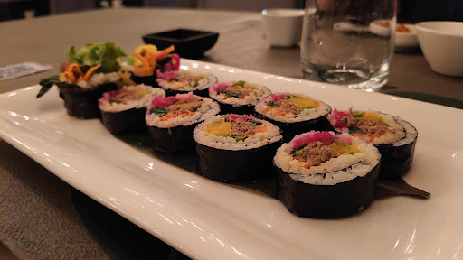 Read moreIo e la mia ragazza abbiamo deciso di festeggiare i nostri 10 anni di fidanzamento in questi ristorante coreano, lei era da molto curiosa di provare questa cucina e allora quale migliore occasione. Abbiamo preso 2 antipasti 1 zuppa e 2 dolci. Noi siamo due "mangioni" ma vi assicuro che le porzioni sono talmente abbondanti che non tornerete mai a casa con la pancia vuota. Gli antipasti erano: Pollo fritto (il piú buono che abbia mai mangiato, croccante e succoso) e Kimbap (davvero molto buono e leggero) Inizialmente eravamo intenzionati a prendere 2 zuppe ma il cameriere ci ha sapientemente indicato di prenderne solo una da dividere per via delle abbondanti porzioni. Il tutto accompagnato dai vari contorni e salse che hanno esaltato gli ottimi sapori delle pietanze. I dolci perfetti. Abbiamo preso il tiramisù al tè e la granita al latte con fagioli rossi e gnocchi dolci. Il tiramisù davvero buono. Diverso dai soliti tiramisù, decisamente piú caratteristico. La granita al latte, che dire, magnifica! Sembrava neve da come era composta. L'accostamento di sapori davvero eccellente ne siamo rimasti davvero sorpresi. Io ho anche preso un bicchiere della loro grappa, che al momento del conto mi è stato anche regalato. Grazie davvero! Volevo fare i complimenti a tutte le persone che lavorano in questo ristorante dal cameriere ( super simpatico e molto gentile) alla signora che credo sia la proprietaria che ci ha raccontato ogni piatto del menù sapendoci consigliare in base ai nostri gusti.