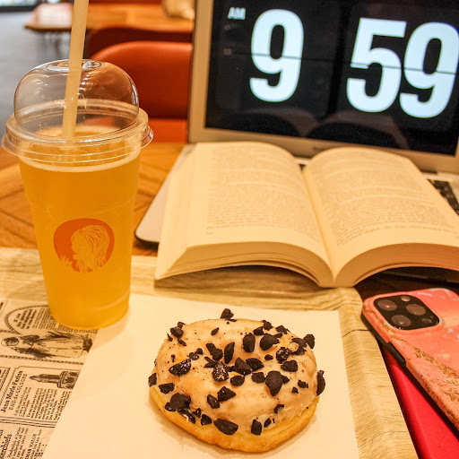 Io ho voluto assaggiare una delle loro rinomate donuts: la cookies🤤 Una ciambella super buona, glassata con granella di biscotto all’esterno. Davvero buona. L’ho accompagnata a un bel te freddo darjeeling (un pregiato te nero) al mango, davvero buonissimo e dolce al punto giusto!🥰