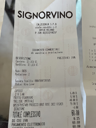 Being the average never a good mark in particular for such wine & deli bistrot under the Calzedonia Group umbrella. The Signorvino (Mr. Wine) brand launched back in 2012 grew up until 25 stores spread across northern Italy mainly in Veneto, Lombardy and Piedmont regions.