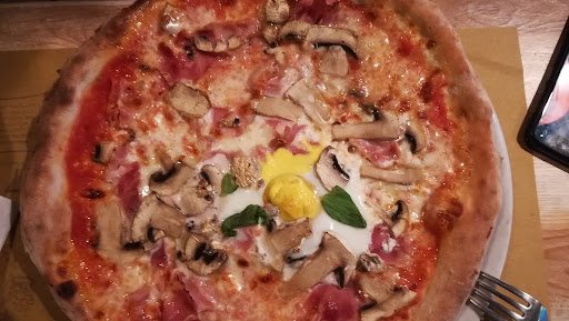 Read moreIn realtà non ci ho mangiato io ma mio figlio ha fatto la pizzata di classe con i professori, ed è lui che ha detto che la pizza era buona, ha 14 anni, il suo giudizio non è molto sofisticato ma è abbastanza affidabile. Come servizio e ambiente invece posso dire di persona che era ottimo, noi genitori abbiamo raggiunto i ragazzi dopo la cena per mangiare la torta, l'ambiente è molto carino, alla classe è stata riservata la saletta al piano di sotto dove hanno potuto festeggiare indisturbati, e il personale è stato gentilissimo anche con noi. Ci torneremo. PS unica difficoltà è arrivare, se seguite Google vi porta ad una strada sbarrata, dovrete lasciare la macchina e fare un pezzo a piedi. So per certo che esiste modo di arrivare in auto vicino al locale perché c'erano auto parcheggiate nelle vicinanze ma non ho capito come si fa ad...