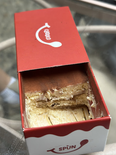 This is a place that is especially frequented by tourists and I am actually surprised that it got such high scores. To be honest, I have not seen any other shop in Milan that is solely dedicated to tiramisu other than Spun. I think this and its centrally located branches have an impact on its popularity. There is not much seating in the shops (this one had none at all) and it mostly operates as take-out. Now let's talk about the taste of the tiramisu... To be honest, this place has a taste that can only be considered average among the ones I have eaten so far in Italy. Since it is boxed and kept in advance, it is not very fresh and a bit too moisty. If you try the tiramisu served in restaurants, I think you will come across much better ones in Milan. I would not recommend Spun, which I have tried twice so far. I also think that the price of the tiramisu is too high for that...