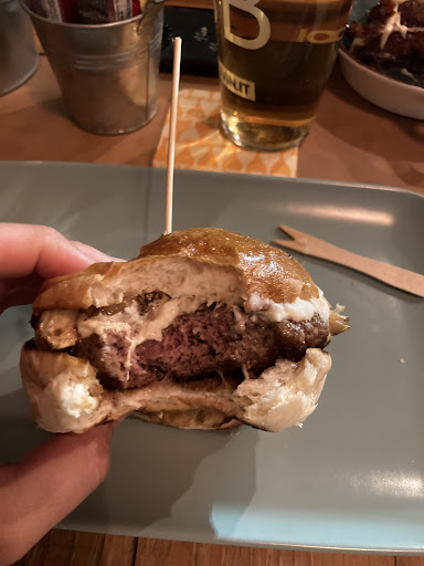 Read moreOggi a pranzo in 4 (con due bambine) abbiamo speso 72euro Coperto da 8euro per Tavolo senza tovagliette o pane o le posate (portate dopo dentro ad un cestino stile “fai da te).. 1 Hamburger con “beyond” (vegetariano) con gorgonzola e salsa di cipolle (nel menù c’è scritto cipolle caramellate) servito senza patatine con pane da hamburger che per qualità e grandezza sembrava quello che trovi al supermercato servito al centro del piatto (sbeccato) nella completa desolazione .. 15euro! 1 hamburger con “beyond” (vegetariano) con 1 onion ring + 2 mezze fette di avocado + 1 uovo al tegamino + 1 disco di melanzana fritta .. servito con pane del supermercato e senza patatine… 20euro!!!! 1 Onion ring con 4 cipolle fritte.. 5euro 1 Coca Cola e 2 bottigliette d’acqua .. 6euro 2 chicken “nuggets” , secchi e un po’ troppo fritti.. che non erano tali in quanto per forma e impanatura completamente diversi da quelli “tradizionali” con patatine (non tradizionali .. anche se avevamo espressamente chiesto se erano tali) .. ma quelle tagliate con buccia e poi fritte .. totale 18euro.