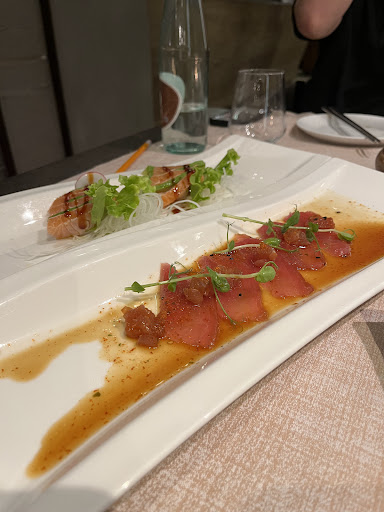 Read morePessimo. Sconsiglio per chi ama il sushi e vuole mangiare bene, qui NO! Troppo caro, eravamo in 8 abbiamo pagato 400 euro e a testa 50 euro. Spendere 50 euro per un sushi di gusto insipido, sembra che c'è molta scelta ma tutto il gusto è uguale, fritto delle sfoglie o tacos pessimo, uramaki pessimi o troppo salati o salse di condimento non abbinate, una tartar che l'ho chiesta per ben 8 volte mi è arrivata con una salsa pessima immangiabile, non portano le cose ordinate, se te ne accorgi o fanno finta di dimenticarsi o dicono che erano già arrivate e forse le hanno mangiate gli altri, i camerieri non venivano quasi mai, le cose da chiedere più volte, o facevano finta di non capire o non capivano. Abbiamo ordinato alle 21.00 e abbiamo iniziato a mangiare alle 22.30 circa. Non merita per niente. Sono tornata a casa insoddisfatta e delusa di aver sperso 50 euro per un sushi che non ho gustato e non ho mangiato!!!! Per chi ama il sushi e se ne intende sconsiglio alla grande. L'ho scelto per le recensioni positive ma non so proprio come hanno fatto a dare una recensione positiva a un servizio del genere e a un sushi del genere. Io mangio spesso sushi e questo devo dire che è il peggiore in assoluto! Menù sera ayce a 35€ troppo caro e non merita...