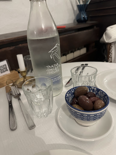 A very good place to eat Greek food! Beautiful location, friendly service and very good food. I wouldn't recommend starting off with pita bread & dips because that fills you up pretty quickly and you won't enjoy the rest as you should (unless you're a big eater!) - there were 4 of us: we ordered dips for 2 and 1 pita each, but that was still too much - we should have shared the bread, too! Beware of the moussaka, it's a big portion! As a reference, we ordered starter for 2, followed by 2 moussaka, 1 souvlaki and spinach fritters, then one mixed plate to share, 1 dessert to share, 2 Greek coffees, 1 bottle of white wine (0,5L) and 1 of still water = €107. Ottimo posto in cui mangiare cibo greco! Locale molto bello, staff gentile e buon cibo. Sconsiglierei di iniziare con l'antipasto di pita e salsine perché riempie molto e rovina il resto. Noi eravamo in 4, abbiamo ordinato salse per 2 e 1 pita a testa ma era cmq troppo, bastavano 2 pite! Attenti anche alla moussaka, è una bella porzione! Tutto ok se mangiate molto, però! Per dare un'idea, noi abbiamo preso antipasto per 2 (4 salse), seguito da 2 moussaka, 1 souvlaki e polpette di spinaci, poi 1 piatto misto da dividere, 1 dessert da dividere, 2 caffè greci, 1 vini bianco (0,5L) e 1 acqua...