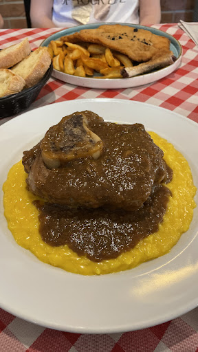 Read moreLa classica cena della vigiglia della partenza per le vacanze estive quest’anno la consumiamo in un locale che offre specialità milanesi…il nome non tradisce! Neanche la cucina tradisce: un’ottima offerta milanese, della tradizione, con qualche spunto interessante verso l’innovazione e l’adattamento alla stagione di piatti che normalmente vengono serviti in altri momenti che non quando la temperatura esterna sfiora i 40°C! Per esempio credo sia davvero interessante la rivisitazione dell’ossobuco propnendolo nella versione estiva. Piatto che però non ho provato perchè ahimè non ce la facevo proprio dato che comunque io e la mia compagna ci abbiamo dato dentro! Si inizia con una condivisione del loro antipasto, composto da diversi salumi, porchetta di loro produzione, gnocco fritto (o pan fritto…o altro a seconda della regione!), giardiniera, e mondeghili. Tutto molto buono e abbondante. Ideale per due, anche se i mondeghili vanno ordinati a parte. Abbiamo poi proseguito condividendo un piatto di riso al salto, preparato divinamente: crosticina perfetta e l’interno morbido al punto giusto. Insomma preparazione da manuale. Abbiamo poi chiuso con LA Milanese: frittura impeccabile, leggera e carne sottile, morbida e gustosa. Insomma la cucina promossa a pieni voti. Anche il servizio merita un encomio: sia il gestore che la ragazza che ci ha seguiti erano preparatissimi, gentilissimi, sorridenti e con quella professionalità non affettata che mette a proprio agio chiunque, dal cliente super formale al gruppo di amici. Unico suggerimento che mi sento di dare in modo, spero, costruttivo, è quello di migliorare la carta dei vini. Se l’offerta di bollicine è corretta, non mi sento di dire lo stesso soprattutto per la parte dei vini bianchi (ma anche i rossi) dove noi ci siamo orientati finendo poi a scegliere un Pecorino di Umani Ronchi che avrebbe dovuto essere da menu del 2021, invece era del 2022, ma a parte questo, che comunque non è una cosa da poco, è proprio la varietà a mancare: come è possibile che alcune regioni proprio non siano rappresentate? Il Friuli, che, a detta di molti (incluso me) è la regione italiana coi migliori bianchi, non è presente in lista! Mentre, a sorpresa, c’è l’Umbria con un’etichetta! Nulla contro i vini umbri anzi! Però capite salta subito all’occhio. Suggerimento: fate una telefonata per esempio a Fabio Scarpitti (Scarpitti Distribuzione) vi sorprenderà per come vi potrà supportare a creare una carta equilibrata, particolare, unica e dal rapporto qualità prezzo che lascerà a...