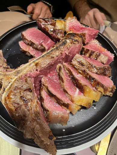 Read morenon sono solito fare recensioni negative e tutto sommato nemmeno questa lo sarĂ . ma mi è rimasto un amaro in bocca che raramente mi è capitato. location molto bella e moderna. personale gentilissimo. vino ottimo e altrettanto lâantipasto. son stato qui con amici colleghi per gustarci una fiorentina. ristorante abbastanza rinomato per la carne. tra lâaltro anche gia testato da qualche componente del gruppo seppur con tagli diversi di carne. optiamo quindi per la fiorentina di chianina. puntiamo al meglio senza badare a spese una volta tanto che si esce insieme. ci viene da subito proposto un taglio da 1,3kg. e dopo diversi minuti arriva lo chef che ci mostra il taglio intero. premessa, non siamo ne macellai ne esperti di fiorentina da riconoscere il peso a vista dâocchio. sembrava bella e corposa. la sorpresa quando è arrivata al tavolo una volta cotta. non piu un blocco quadrato ma praticamente triangolare. come se mancasse una parte. di fatti lâaddetto al taglio, finisce ben presto. e dalle foto di vede chiaramente che di fette ne taglia non piu di 10-15 stando larghi. quindi 5 fette a testa. li per li abbiamo fatto battutine scherzose ma rimane il fatto che quelle 5 fettine non le abbiamo nemmeno sentite. carne buonissima sia chiaro. ma saran stati 100-150gr(anche qui stando larghi)a testa. al che abbiamo ordinato un filetto in piu che ci siamo risuddivisi. buonissimo anchâesso. per colmare la voragine di fame che avevamo. sempre col sorriso e a titolo informativo abbiamo chiesto delucidazioni che sempre garbatamente ci sono state date, dicendo che su 1,3kg togliendo anche lâosso ne è rimasto 1kg di carne. ma come si evince dalla foto quelle fettine non equivalgono certo ad 1kg. dallâosso ne abbiamo tirate fuori a stento altre 3. per un totale di circa 15 fettine e quindi 5 a testa. quindi la mia non vuole esser una recensione negativa perchè è stato tutto positivo, il locale, lâaccoglienza, il personale sia di sala che al banco che lo chef compreso, persino la fiorentina e il filetto ottimi. ma qualcosa è andato sicuramente storto nella scelta del pezzo e del peso. perchè non sarò un esperto e ne un macellaio, ma so cosa vuol dire mangiare 100gr, o mangiarne 300 o mangiarne 1kg. e spendere 50 e rotti euro per 5 fettine mi è sembrato davvero esagerato. sono sicuro che traspare nelle mie parole lâamarezza di una cena tra colleghi desiderata da giorni e terminata con la delusione del pezzo forte. se ci ritornerò mangerò solo filetto per non rischiare di...