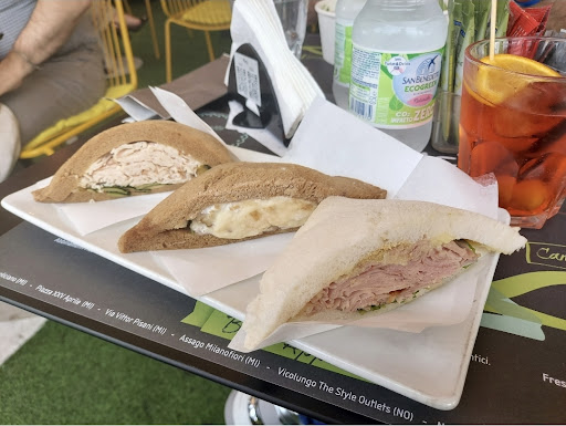 Read moreSemplicemente top. Posto ideale per una pausa pranzo con l'imbarazzo della scelta dei tramezzini. Io ne ho provato vari gusti e sono uno più buono dell'altro. Per provarli tutti o quasi bisogna venire qui più volte, come ho fatto io, perché quando ne assaggi uno, ti dispiace non aver assaggiato l'altro. Super farciti con accostamento di ingredienti studiato e ben equilibrato. Non sono i soliti tramezzini che si trovano al bar, sono veramente eccellenti. Il tutto può accompagnato da uno spritz o un mini spritz, per chi giustamente deve tornare al lavoro e non vuole esagerare. Posti a sedere fuori esclusivamente all'ombra, per gustare serenamente i tramezzini scelti. Trenta tipi di tramezzini, suddivisi in quattro categorie a meno di €4,00 ma cosa volete di più? È ora di venire a provarli. Servizio veloce e gentile. Prezzi nella...