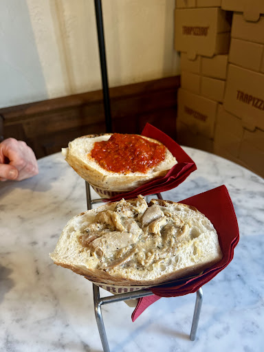 Read moreMy two friends and I are studying abroad for the semester in Milan, and we’re on a mission to find the best food spots. We stumbled upon Trapizzino by chance, and it turned out to be absolutely incredible. We went to the Navigli location four days in a row, and not only was the food fresh and mouthwatering, but the music was also fantastic. My friends and I each got the meatball with tomato sauce placed into warm bread, and it was so amazing every time. We also tried the creamy chicken! We’ll definitely be coming back throughout the rest of our semester! The staff was lovely, and despite the long lines, the food came...