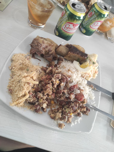 Ci siamo arrivati, dopo una partita all escape room, arrivate affamate... Ci aspettavamo il classico churrasco in realtà... Entriamo subito ci accompagnano al tavolo e ci dicono di inquadrare il qr menù lo apriamo e vediamo con nostra sorpresa che non è un brasiliano a churrasco, evvaaaiiiiiii finalmente... Ordiniamo... 4 caipirinha 2 al mango e 2 mango e maracuja e un kg di pichana con tutti i contorni del caso fejolada, manioca fritta, riso bianco, vinagrete, salsa all aglio e farofa e pane al formaggio... Arriva la pichana già tagliata a fette un po' cotta (per il mio gusto che normalmente la mangio grondante di sangue) era tenerissima, la manioca fritta una bomba ed anche il resto il pane al formaggio libidinoso.. dimenticavo una cosa importantissima in questo locale i cocktail sono talmente buoni che te li servono in bicchieri bucati🤣🤣🤣🤣tanto che prima che arrivasse la carne eravamo già partite con il secondo giro di caipirinha 🤣🤣🤣 non contente ci siamo fatte consigliare dal "capitano" un mix di assaggi divisi per quattro, abbiamo praticamente assaggiato l intero menù dolci compresi abbiamo provato di tutto tranne le pizze... Siamo uscite da lì che non eravamo appesantire, eravamo piacevolmente sorprese dalla bontà del cibo e dei cocktail lo suggerirò a chiunque mi chieda dove può trovare un buon brasiliano diverso dal churrasco.... Un consiglio che ho già dato anche al " capo" inserite la banana fritta che davvero è una pietanza della cultura brasiliana unica... Complimenti davvero a tutti per la gentilezza la disponibilità bravissimi...