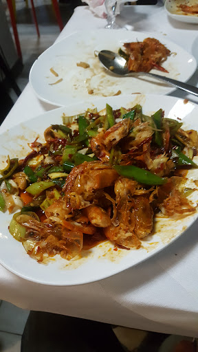 seemed funny to come to Italy and have chinese food however we fancied spicy food....we had fried shrimps with peanuts which were a bit too crunchy, peanuts were cashew nuts and meat was not easy to come off. Also had seafood noodles and fried rice, both tasty but too oily, shame. The last dish was chicken mushrooms and this was nice. Our concern is around the oil and salt used, well too much and service was so slow and messy that when the waiter came ( i had to call him) we were told that the kitchen was closed....then we had to remind them about our order... again shame really as expectations were high...and evening was a flop...to end the meal you get free...