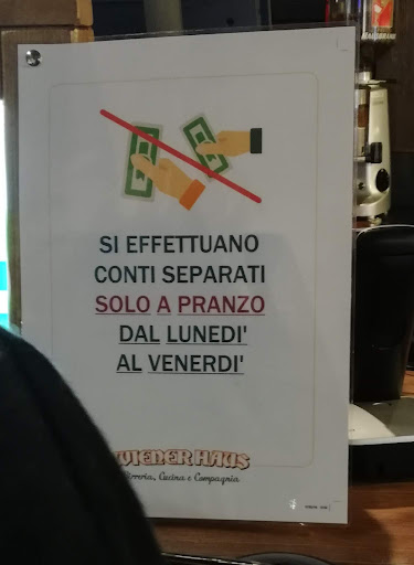 La valutazione complessiva potrebbe essere tranquillamente superiore alle tre stelle, ma rispetto ad altri Wiener c'è da rilevare qualche disappunto. Tralasciando qualche comanda che si "perde" nella confusione e che e' fisiologica nei locali di grande afflusso, e tenuto conto che la qualita' generale del cibo e' discreta, due particolari molto fastidiosi mi costringono ad una recensione poco tollerante. Uno, il prezzo di alcuni piatti, ad esempio il "tagliere misto" (mi pare 9 euro, forse 8.50). Per quella cifra ci si aspetta di poter mettere sotto i denti qualcosa di sostanzioso, si riceve infine un tagliere tondo piccolo con un'infiorescenza di formaggio alle noci al centro e un totale di sette/otto fettine microscopiche e sfilacciate di affettati. Per quella cifra, nella maggior parte dei locali, quasi ci si sfama del tutto con un tagliere. Vedo ora che e' nel menù del sito Wiener, esattamente come mi e' arrivato ieri, quindi non e' manco colpa del cuoco. Pessimo. Seconda cosa, non meno fastidiosa, sono i cartelli alle casse che informano che "non si fanno conti separati" eccetto a pranzo in settimana. Ora, la cosa gia' sarebbe poco tollerabile in un ristorante a gestione famigliare in un crotto a 2000 metri, ma al Wiener Haus, che pure e' una catena con quelle che immagino essere delle linee guida di cortesia comuni, e' davvero fuori luogo e infuriante. Ogni esercente, in proprio o in una catena, si arma dei suoi bei rotoli di monete e si prepara ad accettare contanti o carte. Il "pagare alla romana" non e' una norma, e' una cortesia che i clienti fanno all'esercizio, e non si puo' imporre ad una tavolata di tre, cinque o dieci persone di impazzire per trovare la quadra coi conti, solo perche' chi manda avanti quella filiale non ha cinque secondi in piu' a persona per dare il resto corretto. Tra l'altro -spero di non sbagliarmi- altri Wiener visti recentemente non avevano questa regola vessatoria e, probabilmente, illegale. Peccato, birre e altri piatti sono di qualita ' tra l'accettabile e il buono, ma particolari come quelli sopra non ti fanno venire voglia di tornare. Allego le immagini del cartello e la foto -presa dal menù ufficiale sul sito Wiener- del "ricchissimo"...