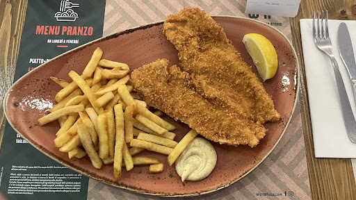 Read moreProtagonista assoluta del menù è la Wienerschnitzel, tipica cotoletta viennese accompagnata sempre - come avviene anche per i Burger - dalle patatine fritte e un poco di salsa (al gusto mi è sembrata inevitabilmente maionese, ma potrebbe essere qualcos'altro!).