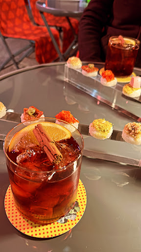 Read morePrima volta in questo locale zona colonne. L’interno è molto piccolo, sicuramente non adatto ad un aperitivo con un gruppo di amici, tantomeno si presta all’intimità con una persona visto che per forza il personale sarà sempre attaccato essendo il posto così ristretto. Nonostante ciò è un posticino molto particolare e colorato, divertente (bagno molto simpatico). I drink sono buoni, ho provato prima un negroni con cannella e bitter al cioccolato, entrambi i sapori si sentivano molto bene e risultava più dolce rispetto al negroni normale, mantenendo comunque il suo stesso corpo; poi un drink alla violetta non entusiasmante. Avevo sentito che in questo posto servivano i rizi, una sorta di sushi all’italiana: alla mia richiesta di averli vegetariani non c’è stato alcun problema, ma non erano nulla di che ed anzi, avevano un retrogusto acidulo non troppo piacevole. In ogni caso potrebbero sforzarsi a riportarli ad ogni drink, non penso sia una grande perdita o fatica visto che non hanno sopra il caviale ed i drink hanno un...