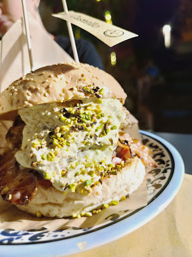 Read moreNon è la solita hamburgheria,bello il posto,ben organizzati in cucina ed in sala,poca attesa nonostante il pienone del sabato si mangia si ordina si viene serviti in modo celere,ma con grande attenzione simpatia e professionalità del personale Panini ben pensati e ben presentati con ingredienti della tradizione siciliana che si accostano e sposano l' hamburger ,non solo un cibo d' oltre oceano,ma diventa siculo con odori e sapori tipici di questa terra Buonissimi i crostoni,con le acciughe,e la cipolla in agrodolce,la tuma i salumi dei Nebrodi,e il pistacchio e il pomodorino giallo o rosso.... Il tagliere anch' esso ben presentato con salumi e formaggi tipici,e pasta fritta I dolci buoni,ma potrei a questo punto suggerire di accostare magari qualcosa di caratterizzante siciliano,ricotta!?cannoli!? cassata!?bianco e nero!?sfinci!? Creme al pistacchio!?.....il tartufo di pizzo è distante,anche se apprezzabile come anche il tortino cuore caldo Il prezzo è sopra la media,ma in linea con la qualità che si trova nel piatto un appunto....,ma il caffè nel bicchierino di carta è davvero necessario!?!?!?visto che è tutto servito con belle ceramiche tipiche, calici per vino o per 🍻🍺? ....anche un pane più casereccio sarebbe un valore...