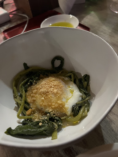 Read moreMeraviglia In questo gioiello di ristorante sono riusciti a coniugare un ambiente piacevole e ricercato, condito dagli affreschi e le pitture di un famoso artista (a voi riconoscere il nome) alla qualità di un cibo che affonda le proprie radici nella tradizione, senza dimenticare un tocco di novità e rielaborazione. Il cibo è ottimo, con alcuni apici raggiunti in una peperonata con uva, un carpaccio di manzo al pepe rosa e una focaccia di grano arso, continuando per le orecchiette con melanzane fritte, speck, pinoli e ricotta salata. Ottimo anche il prosieguo con una costata d'asino che si scioglie in bocca e un semifreddo all'amarena che sorprende anche i più scettici. Alla piacevolezza dell'ambiente e della cucina fa da corollario il personale, pronto a soddisfare richieste e desideri senza incertezze. In particolare ringraziamo il cameriere di sala Pietro per aver messo la sua passione in ogni portata. Per finire tutto ciò soddisferà i più con un rapporto qualità/prezzo...