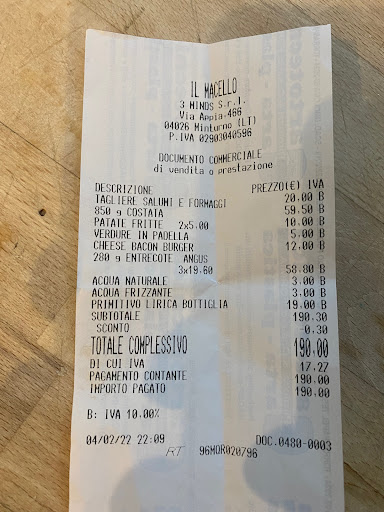 Read moreEntrati e subito entusiasti per un ambiente pulito e ben arredato, siamo stati accolti molto cordialmente dal cameriere. Al momento dell'ordine, vista la mancanza di formaggi per il tagliere "salumi e formaggi" proposto in menu, abbiamo optato per la soluzione proposta dal cameriere e quindi un tagliere di soli salumi composto (se non erro) da 5 salumi diversi (5 fette per salume, salsiccia secca a parte che le fettine erano 10). Abbiamo poi ordinato 3 entrecote, 1 costata, ed un panino, 2 porzioni di patatine ed una di verdure saltate. Tempo di servizio estremamente lungo a parte (ci saremmo aspettati un servizio molto più veloce visto che il ristorante era completamente vuoto) abbiamo avuto modo di assaggiare una carne che, seppur morbida, non aveva un gran sapore e la cui cottura (chiesta al sangue) era oltre, a mio parere, la media cottura, questo è forse giustificabile per le entrecote ordinate per i bambini in quanto lo spessore forse non permetteva una cottura ottimale al sangue (cosa a cui ho pensato dopo, ma per la quale il cameriere non mi ha avvisato), ma certamente non per la costata da 850g. I contorni invece molto buoni, peccato non aver mai ricevuto le 2 porzioni di patatine, che però abbiamo regolarmente pagato, purtroppo per mio errore infatti ho notato solo questa mattina, ahimè, che apparivano nel conto così come il valore del tagliere salumi e formaggi è stato applicato per intero (20,00 €). Essendo del posto, mio malgrado, mi tocca segnalare la mia insoddisfazione rispetto questo ristorante... non tanto dovuta alla lentezza del servizio (probabilmente più concentrato sul take-away che sulla sala) ma piuttosto rispetto ad un conto molto sbilanciato rispetto la qualità del cibo servito. mi auguro che questo possa essere in qualche modo rivisto dal ristoratore perchè potrebbe essere veramente un bel locale da frequentare, dove però non ci si aspetta di spendere circa 40€/persona soprattutto se al tavolo (come nel nostro caso di ieri) ci sono sedute 5 persone di cui 3 bambini. Spero che questo mio commento possa essere letto in maniera costruttiva in quanto non è mio interesse "punire" nessuno piuttosto cercare di identificare cose che possono essere...