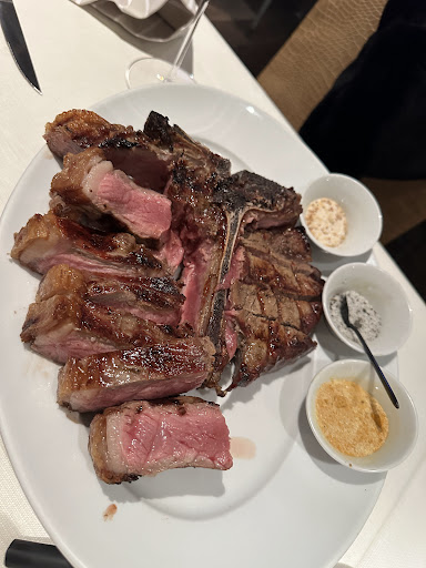 Dopo esserci stato per 3 volte, posso assolutamente dare il mio parere su questo posto che purtroppo ha un solo, ma GRANDISSIMO, DIFETTO: il proprietario. Persona che da l'illusione di essere al servizio del cliente, ma non appena si cerca un confronto su delle cose che magari sarebbero da migliorare, il signorotto si sente il più intelligente e il più grande di tutti i ristoratori del mondo. Il signor "so tutto io" non è disposto al confronto, quindi lasciate perdere se avete dei suggerimenti o delle critiche; tempo perso. Detto questo, non affidatevi al proprietario sui vari suggerimenti che vi darà (come ad esempio farvi dividere a metà gli antipasti), potreste trovare delle sorpresine sul conto. Carne di ottima qualità e posto decisamente accogliente (motivi per i quali non metto una sola stella). Caro signor "so tutto io", sia più aperto alle critiche e ai suggerimenti dei clienti, potrebbero aiutarla a migliorare il ristorante e a non perdere clienti per un suo atteggiamento da sbruffone.
