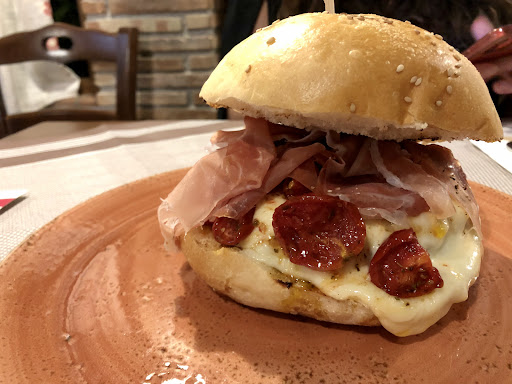 Read moreDavvero un bel locale, personale molto molto cortese e cibo ottimo. Non c’era disponibilità per due persone, ma sono riusciti comunque a riorganizzare i tavoli per farci accomodare. Molto apprezzato! Abbiamo optato per due panini con ingredienti a scelta: uno con hamburger, crudo, provolone e pomodorini; l’altro con hamburger, bacon croccante, provola e peperoni cruschi. Eccezionali entrambi. Prezzi assolutamente accessibili. Consigliato sia per pranzi/cene in coppia sia per gruppi di...