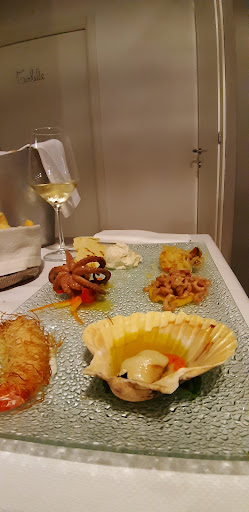 Read moreUn ottimo ristorante di pesce che si merita 5 stelle. Tutto cotto alla perfezione ed equilibrato nelle porzioni. C'è stato offerto un "percorso" con antipasto di crudo, antipasto caldo, un ottimo pesce al forno con contorno e un assaggio di frittura degna del suono nome. Sono rimasto molto contento anche della mia birra: non bevendo vino mi è stato servita una birra artigianale di un buon birrificio e quindi premio l'impegno per non portare a tavola la solita birra alla spina. Un paio di note però le devo fare: il servizio è stato efficiente ma un po' "freddo". Non posso confermare perché ero lì per una cena organizzata ma effettivamente non ho visto dei menù (come segnalavano altri) e questo non è proprio nella normalità. I dolci buoni ma non eccezionali come il resto della cena. Sulla location mi viene da dire che meritate di meglio vista la qualità che...