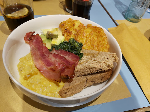 Tourists stay away... Prices are ridiculously high. The food wasn’t even that good. We had an avocado toast and an American breakfast. The toast was ok, nothing special. The American breakfast was horrible. Super spicy bacon, very hard and chunky bread that does not taste well and the eggs tasted bland and looked like they were thrown into a mixer. The menu was written in Italien, so we had to ask the waitresses it they could help translate it. The atmosphere was nice though and the juices...
