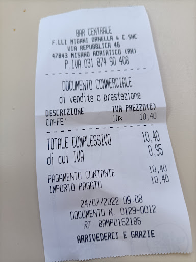 Read more…è stato il mio primo locale!!…appena arrivata a Misano Adriatico!!…e mi sono fermata per una pausa caffè!!…è il bar “Centrale”!!…quindi proprio nel cuore della località romagnola che si affaccia sull’Adriatico!!…qui si possono trovare tanti posti a sedere all’esterno!!…e pure all’interno qualche tavolo!!…è un ambiente che si può frequentare in vari momenti del giorno!!…per la colazione!!…il caffè!!…l’aperitivo e il pranzo!!…e pure per il gelato!!…vista l’ampia scelta di gusti in esposizione!!…io come dicevo ho fatto la mia pausa caffè!!…chiaramente seduta a un tavolino all’aperto!!…e con personale accogliente e disponibile!!…quindi!!…senza dubbio consigliato questo bar “Centrale”!!…proprio in centro a Misano...