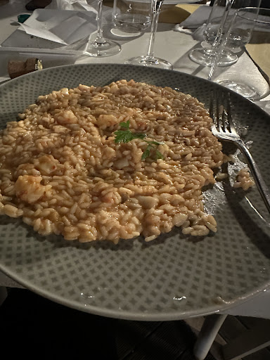Ordine fatto alle 21:28. Piatto di risotto alla marinara (diciamo più un riso con del pesce di dubbio gusto) arrivato alle 22:41. Mi si presenta questo piatto di riso spianato...sporcato con del pomodoro, qualche pezzo di mazzancolla e qualche pezzo di calamari di gomma. Il riso sia scotto che duro ha fatto sì che ne mangiassi due forchettate. Salato dal sapore di porto e non di mare/pesce. Il cameriere ha chiesto se andasse tutto bene, gli ho spiegato il tutto facendogli notare il piatto pieno e le posate a "X" all'interno. Dopodiché, ho pagato i 14€ del riso non mangiato e senza ricevere nemmeno lo scontrino. Va bene così. Un posto da dimenticare, servizio pessimo. ringrazio unnlocale poco distante per avermi fatto mangiare. Aggiungo che chi ha mangiato gli altri risotti lo ha mangiato per fame dopo ben un ora e mezza di attesa, mentre il ragazzo che ha chiesto l’antipasto “prima” degli altri perché poi andava a lavoro… è andato via senza cenare per il troppo...