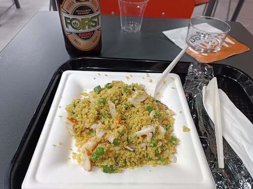 Abbiamo preso cibo da asporto in questa gastronomia dal momento che non avevamo la cena compresa in hotel: ampia scelta di piatti e cibi, personale gentile e disponibile. Possibilità di mangiare nei tavoli adiacenti al locale, non c'è servizio al tavolo ma c'è la classica chiamata per numero. L'unica nota negativa che posso trovare è l'aggiunta di €0,70 se si vogliono le posate, ma dal momento che sono obbligatorie per mangiare cibi che per il 70% dei casi le richiedono, tanto vale metterlo in conto a priori già nel costo del cibo! I PREZZI non sono troppo bassi ma il cibo è buono e si spendono volentieri. Pagati €13 e 50 per una porzione di polpo con le patate e una porzione di insalata di mare che non erano troppo abbondanti ma molto buone. Attenzione all'AGLIO! Utilizzato in abbondanza in tantissimi piatti, anche delle patate al forno per assurdo....