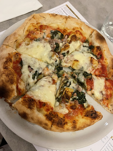 Read moreTorniamo spesso per cena in questo locale, così, per vedere di confermare l'esperienza positiva delle volte precedenti. Esperienza confermata al 100% ogni volta, oserei dire! L'accoglienza e il servizio sono sempre impeccabili, nonostante il locale sia sempre pieno. A tal proposito consiglio di prenotare, c'è il rischio di non trovare posto. E questo forse è l'unico difetto trovato. Il locale non essendo grandissimo, e venendo assalito dalla gente, è veramente rumoroso. Nonostante tutto però, questo passa in secondo piano. I tempi di attesa tra ordine e preparazione diventano impercettibili visto che vengono smorzati da un piccolo aperitivo offerto dalla casa. A questo giro abbiamo oprato per una pizza con impasto speciale e una bruschetta. La pizza è sempre bellissima da vedere, lievitatissima, fragrante e ben farcita. Boccone dopo boccone, ti fa sentire pieno, senza quella sensazione di pesantezza, davvero buona! La bruschetta non è da meno, con il pane fatto in casa da loro, di sicuro non ti fa sentire meno soddisfatto. Poi cosa fai? Non provi quella dolce con mascarpone e nutella? Ma va là. Per concludere, liquori e dolcetti fatti in casa offerti dalla casa. Cos'altro dire? Per me è sempre super...