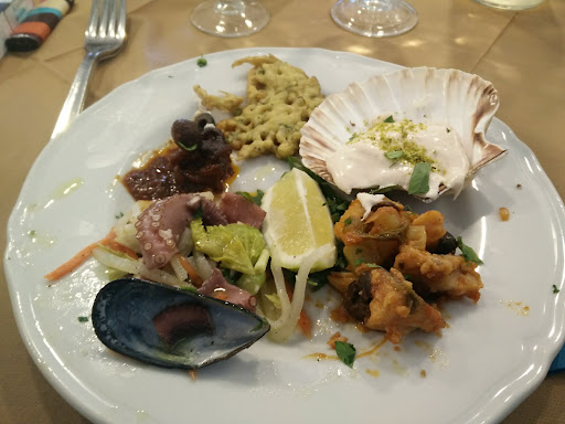 Absolutely amazing meal! We were brought to this locals favorite by an Italian friend. We were the only “tourists” here which made it even more special. We tried fresh bread, bread, steamed mussels in tomato sauce, grilled fish, clams with spaghetti, and margarita pizza, washed down with house white wine and limoncellos. The mussels were our favorite; I could have eaten two bowls alone! The fish and clams were great too. Seafood is where this place shines. The pizza was the only mediocre item, I personally found the dough too thick and the sauce not tomatoey/sweet enough . The price was also a surprise - our entire bill for four people all inclusive was 80 euros!...