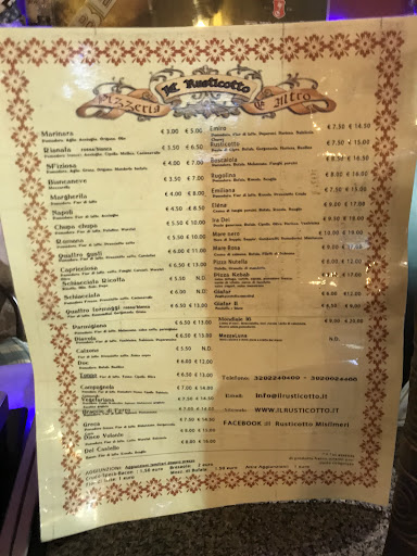 Read moreOttima pizzeria, con pizze di varie farine e pizze gourmet. Vale la pena venire a provarle, fanno anche la consegna a domicilio, ma mio consiglio gustatevi la pizza in pizzeria, anche perché se la gustate a casa vi perdete la simpatia e l’accoglienza che il personale vi riserva. Sono stato a Misilmeri per lavoro e tutte le Sere ho cenato al rusticotto sia per la bontà del cibo che per la simpatia...