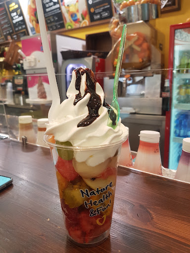 Attirati dalla simpatica insegna e da un intrigante cartellone, ordiniamo un frapshake. Una ragazza svogliata e per nulla gentile, ci liquida in maniera brusca asserendo che quello da noi scelto non è disponibile e che dovevamo comunque recarci alla cassa posta sul retro del bancone (il quale occupa la corsia centrale del centro commerciale). Un po deluso ne ordiniamo uno al gusto caffè: l addetto scompare dalla parte opposta (dove eravamo all'inizio...bho) e ci consegna un bicchiere con una specie di pessima crema di caffè, senza granella o cioccolato (ben presenti nella foto promo) senza cannuccia e copri bicchiere (idem) e con un baffo di panna montata spray da bomboletta dell Eurospin (ho riconosciuto la marca) il tutto per la modica cifra di 4.50€... il finto shake inoltre si rivela acqua con ghiaccio al sapore di caffè annacquato. Non è mia abitudine sindacare su quattro o cinque euro ma ne sono rimasto deluso. Pessimo, pessimo, pessimo. Non torneremo più e lo...