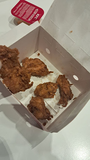 Read moreDa quando ho iniziato a provarlo, ho sempre considerato i panini e il pollo del KFC superiori a quelli del MC rispetto a sapore e soprattutto bontà della materia prima e croccantezza. Da un anno a questa parte sto riscontrando un'abbassamento della qualità del prodotto. Non posso dire nulla rispetto al servizio, alla gentilezza e alla disponibilità delle ragazze e dei ragazzi che vi lavorano, disponibili anche alle spiegazioni delle offerte e come si ordina tramite l'applicazione. Non posso dire lo stesso per i prodotti che vengono preparati. Vi posso fornire la foto di ciò che ho preso proprio ieri sera: il Kentucky Cheese & Bacon. Dalla foto proposta nell'applicazione è arrivato tu'altro. Va bene, lo so che siamo in un fast food come il mc, non possiamo chiedere altro e l'immagine non corrisponde quasi mai a ciò che viene cucinato. Però mi aspetto sicuramente molto di più. Vi descrivo quello che mi è stato cucinato: panino che si sfalda subito appena si prende con le mani e si addenta, bacon che sembra bollito, pezzo di pollo piccolissimo che non riempie nemmeno il panino, la cui panatura è sì, gustosa, ma super molliccia(sembrava l'avessero scaldato al microonde). L'unica cosa che dava sapore erano le spezie della panatura, il cheddar e la maionese, ovviamente messe nella quantità "giusta" per coprire il piccolo pezzo di pollo, quasi per fare sembrare il panino più pieno. Il panino risulta piccolo e proprio privo di consistenza della panatura e del bacon croccante. Non mi ha soddisfatto pienamente, come se ne avessi mangiato la metà e in più come se il pollo fosse stato scaldato al microonde. Spero che i proprietari possano tenere conto di questa mia recensione in modo tale che possano aumentare la qualità e la preparazione del prodotto, cosí come anche delle patatine che sono risultate per la maggior...