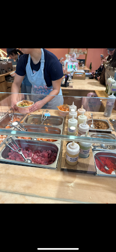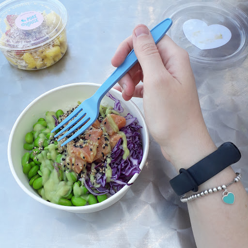 Read moreLuogo molto carino, personale cortese, varietà di scelta nel menù. Per chi vuole provare gusti nuovi ed inesplorati, lo consiglio. Si trova nella zona ristoro del corpo centrale del centro commerciale e dispone di tavoli interni. Possibilità di usufruire di tavoli antistanti il locali nella zona centrale interna dell'area ristoro o tavoli esterni messi a disposizione dal centro commerciale. Io ho provato la poke sunny salmon che contiene riso bianco come base, juicy salmon, avocado, edamame, cavolo rosso, salsa speciale, crema di avocado, crispy mix alghe e wasabi, sesamo. Abbinamento di sapori ben riuscito! C'é la possibilità di creare la poke con gli abbinamenti che più si preferiscono. Per una pausa fresca consiglio la mini fruit poke 2 che contiene ananas, fragole e mandorle. Prezzi leggermente elevati rispetto alla media ma giustificabili dalla particolarità del luogo...
