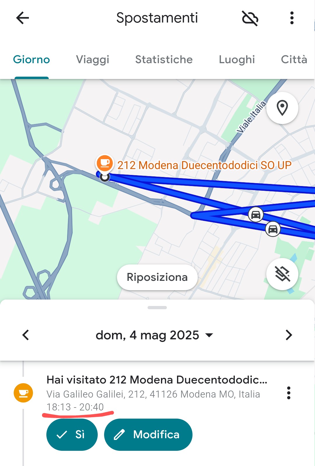 Edit: trovo abbastanza triste constatare che non siete in grado di assumervi le vostre responsabilità, e che anzi preferite rilanciare con l'accusa di aver voluto infamare gratuitamente il locale. Ma visto che non ho nulla da nascondere, ho aggiunto lo screen degli spostamenti registrati su maps con tanto di orario di permanenza nel locale. Tanti...