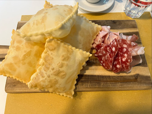 I honestly did not know why this place has 5. “ I have eated the dumpling” is a saying in my language and it means I got fooled. So…. because of the 5 rating I left from Bologna to Parma with a pit stop in Modena just to eat at this high rated place. What do you know?! I should have stayed in Bologna and I should have been making some shoppings at the any local store. Because my premium order “gnocco fritto con salumi della tradizione e marmellate” translate in English like this: “fried dumpling with traditional cured meats and jams”. So dumplings are not what they should be, the cure meats are from supermarket and 0 jams. The tart that you saw in picture 2... again, was not good. The cappuccino was good, what was a relief. You judge and decide if you go to a pub and eat from a supermarket at 22€. To make everything perfect 4 the employees has 0 knowledge of English. 🤦🏻PS. After I post it I saw that some of the reviews are made by the employees. LOL!...