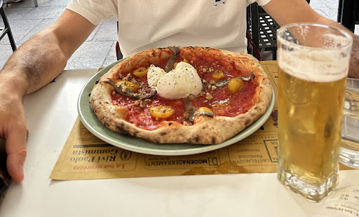 Al Grottino has been my local pizzeria for several years. The food is always exceptional. The ingredients are excellent quality and the dough is light and perfectly cooked. They do some traditional food from Modena, such as the Vecchia Modena pizza (a famous pizza from the city made with bacon, balsamic vinegar and parmigiano reggiano cheese and mozzarella - I highly recommend!) and also speciality pizzas made with interesting combinations. The service is always reliable, efficient and friendly. The prices are extremely reasonable and the portions are fantastic. The restaurant has indoor and outdoor seating and is located in a popular area of Modena where there are beautiful clothing and accessory boutiques and popular ice cream shops. I can't suggest this place enough - lunch or dinner, a great restaurant for affordable and delicious...
