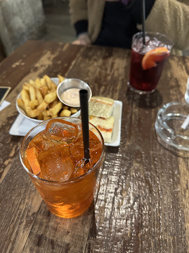 Read moreCi siamo accomodati ai tavoli esterni, pensando di fare un aperitivo ( fuori l'insegna dice kitchen wine cocktail ). Abbiamo chiesto un Campari soda con vodka ed un bitter bianco e vodka, ripetendo l'ordinazione tre volte. Dopo poco, la cameriera esce dicendo che non hanno né Campari soda né bitter bianco. La cosa ci ha straniti, ma non ci siamo arresi e ci è stato portato il menù: Prezzi molto alti, vini... "Rosso fermo" e "bianco fermo" ( un wine bar? ) . Alla fine abbiamo ordinato due prosecchi... Serviti solo con una ciotola di patatine da discount ( perché la cucina era chiusa... Quindi non c'era lo chef a preparare "due rustici surgelati, un tramezzino o a farcire un pezzetto di piadina... Consiglio di venire solo per un amaro, dopo cena,...
