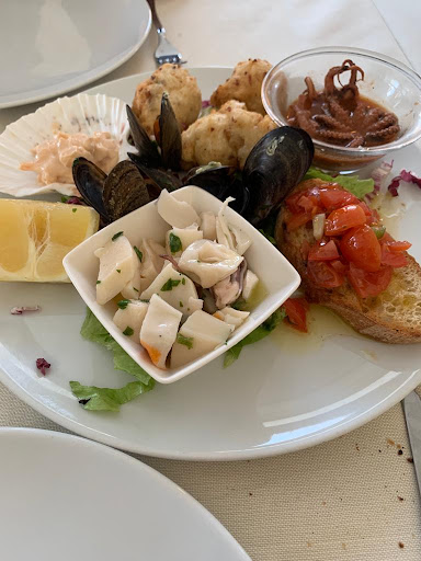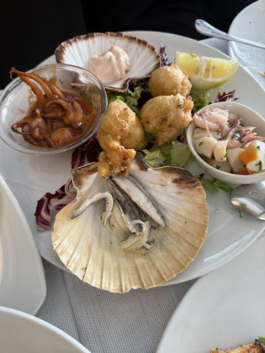 Read moreMi sono recata in questo locale per un pranzo veloce (o almeno così doveva essere) in pausa lavoro. Arredamento anonimo e menù classico, che ricorda un po' gli anni 90. Ho trovato scarso il servizio: guardandomi attorno, le portate arrivavano ai tavoli in modo disordinato... in un tavolo davanti al mio, prima la pizza ad alcuni, dopo 10 minuti gli antipasti ad altri e dopo altri 15 minuti (quando la pizza era stata abbontantemente "digerita"), la pasta ad altri ancora... poi il pane e il parmigiano. Poca accuratezza, pacchi di grissini aperti direttamente davanti ai clienti al posto che predisporli già in modo accurato sul tavolo. Personalmente ho ordinato il mio piatto alle 13.07 ed è arrivato dopo 30 minuti... la mia idea di pranzo veloce è quindi un po' sfumata. Ho dovuto chiedere io il pane. La grigliata mista di pesce era ben cucinata. Ammetto "insolita" perché passata nel Pangrattato, ma buona. Poi, avevo dei calamari fritti. Graditi, ma a mio parere non fatti sul momento: riciclati o scaldati? Il prezzo dei piatti è più basso rispetto alla media dei...